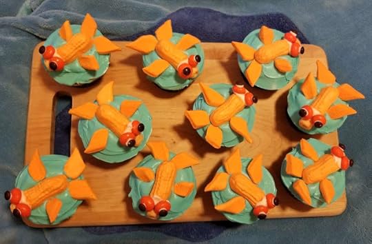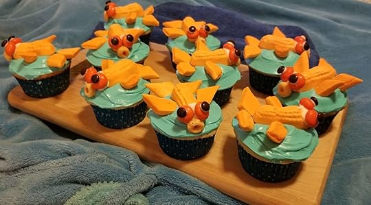I read the e-book version of this which included videos that were really helpful. The book also includes a lot of time and frustration saving decorating tips. The authors are more interested in presentation than anything else so they recommend cake mixes and store-bought frosting. And while I can see how store-bought frosting would be ideal for some of the projects here in terms of consistency and stuff, I'm a from scratch kind of baker, which means all of these projects would take me at least twice as long. Not that it's going to stop me. Since my cupcakes are also vegan, it is sometimes challenging to find alternate decorating candy. But I manage. Don't anybody worry about me.
