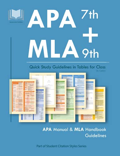 "APA 7th + MLA 9th Quick Study Guidelines in Tables for Class" are 32 big colorful sheets (8''x11'') of tables specifically designed for the updated edition of the APA Manual (7th edition) and MLA Handbook (9th edition).