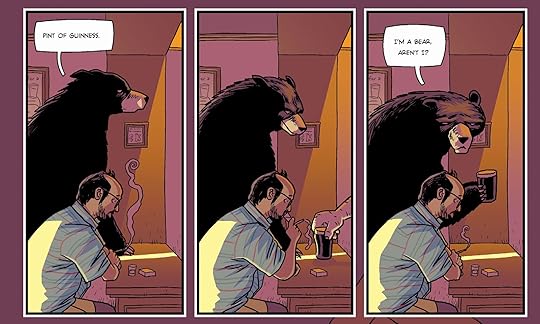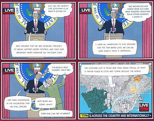 D’Israeli, one of my favourite comic artists, is not your typical superhero illustrator, so his take on the genre feels more realistic, more likely, should something as absurd as these events occur. His portrayal of Michael as a shambling, no-hoper, without a hint of chiselled good looks or a six-pack, makes him an instant everyman, and identifiable. I suppose what I’m trying to say is that it makes him more ordinary.