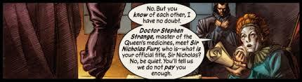 …Sir Nicholas Fury, head of England’s Intelligence, and Dr. Stephen Strange, Queen’s head physician.