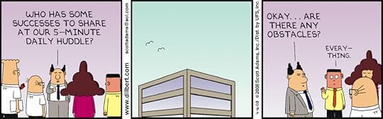 Segundo libro de Dilbert que leo, y último, presiento, por una temporada. La necesidad de hacer el chiste en tres viñetas hace que muchas veces esté todo traído por los pelos, cosa que nunca noté con Garfield o Calvin&Hobbes, por poner dos de mis favoritos.