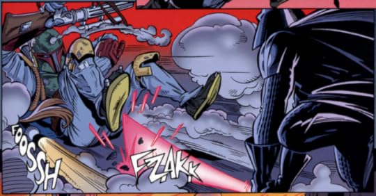 We have the first time Darth Vader and Boba Fett meet, Fett showing his intelligence both in tracking his target and in trying to decipher Vader’s actual goals, and Fett being badass as a combatant. Oh.. and did I mention the Vader/Fett fight? No?