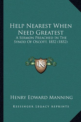 ""Help Nearest When Need Greatest"" is a sermon preached by Henry Edward Manning in the Synod of Oscott in 1852. The book contains a transcript of the sermon, which focuses on the importance of helping others in times of need. Manning argues that we should always strive to be the first to offer assistance to those who are struggling, whether they are our friends, family members, or strangers. He emphasizes the importance of kindness, compassion, and selflessness in our interactions with others, and encourages his listeners to make a conscious effort to be more empathetic and generous. The book is a powerful reminder of the value of human connection and the importance of helping others in times of need.This scarce antiquarian book is a facsimile reprint of the old original and may contain some imperfections such as library marks and notations. Because we believe this work is culturally important, we have made it available as part of our commitment for protecting, preserving, and promoting the world's literature in affordable, high quality, modern editions, that are true to their original work.