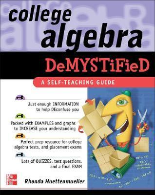 A BETTER WAY TO COLLEGE ALGEBRA X-PERTISE One of the most valuable tools acquired in a university education, college algebra is essential for courses from the sciences to computing, engineering to mathematics. It can help you do better on placement exams, even before college, and it's useful in solving the computations of daily life. Now anyone with an interest in college algebra can master it. In College Algebra Demystified, entertaining author and experienced teacher Rhonda Huettenmueller breaks college algebra down into manageable bites with practical examples, real data, and a new approach that banishes algebra's mystery. With College Algebra Demystified, you master the subject one simple step at a time—at your own speed. Unlike most books on college algebra, general concepts are presented first—and the details follow. In order to make the process as clear and simple as possible, long computations are presented in a logical, layered progression with just one execution per step. This fast and easy self-teaching course will help