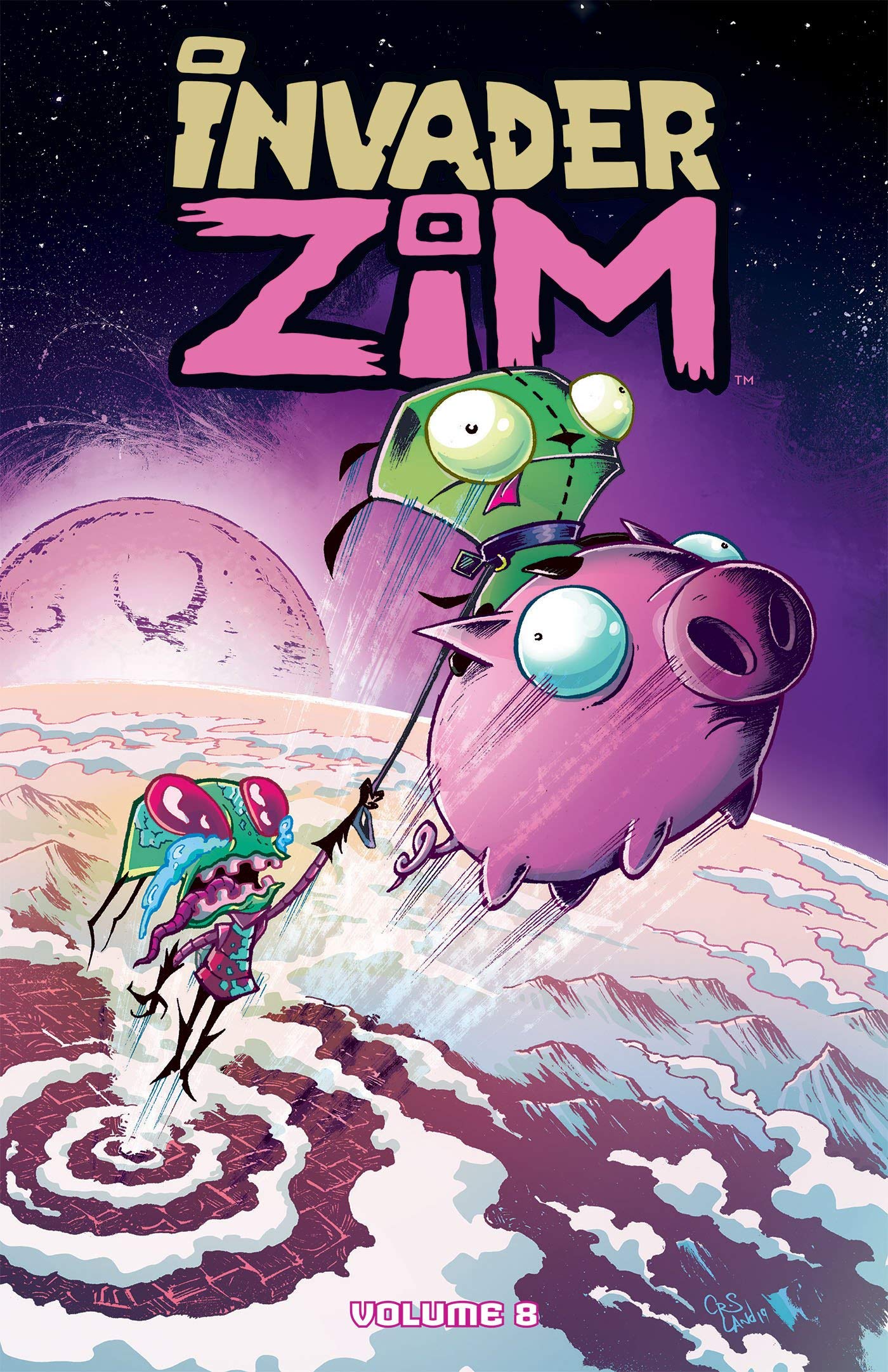 Oni Exclusive Edition features exclusive cover art! The eighth volume in the bestselling Invader ZIM comic series based on the hit Nickelodeon TV series. When Dib wakes up one cold, depressing morning to find that ZIM is actually his brother, could things get any worse? The answer, as always, is yes, as told in these five amazing standalone Invader ZIM stories collected in trade for the first time! What happens when GIR gets hit by a falling girder in the presence of a full human audience? Who’s telling the truth when an alien kidnaps Dib, Gaz, ZIM, and GIR to find out who destroyed his prize robot? And why does ZIM think it’s perfectly normal to give out raw steaks on Halloween? The answer, as always, is yes! (W) Sam Logan, Eric Trueheart, Rikki Simons, Sam Maggs, Steven Shanahan, Matthew Seely, Tait Howard (A) Kate Sherron, Maddie C, Matthew Seely, Tait Howard, Fred C. Stresing, Meg Casey, Dean Rankine, Warren Wucinich Cover Dave Crosland