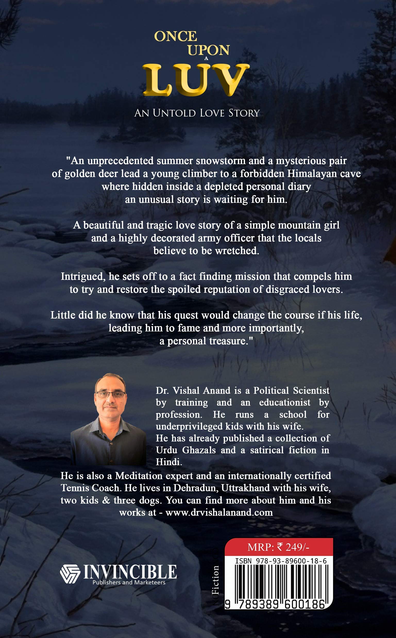"Once Upon A Luv" by Dr. Vishal Anand is a book about life changing event happening in the life of protagonist. They still starts with he being on the HImalayas and admiring and finding Lord Shiva in every person. Then he goes on the hunt of Con man's cave. There are total 15 chapters and the book is well written.