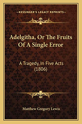 Adelgitha, Or The Fruits Of A Single A Tragedy, In Five Acts is a play written by Matthew Gregory Lewis in 1806. The story revolves around Adelgitha, a young woman who is forced into a marriage with a man she does not love. She falls in love with another man, but their relationship is discovered and they are both sentenced to death. The play explores themes of love, betrayal, and the consequences of making a single mistake. The characters are well-developed and the plot is full of twists and turns that keep the reader engaged. The language used in the play is poetic and emotive, adding to the overall impact of the story. Adelgitha is a captivating tragedy that is sure to leave a lasting impression on readers.This scarce antiquarian book is a facsimile reprint of the old original and may contain some imperfections such as library marks and notations. Because we believe this work is culturally important, we have made it available as part of our commitment for protecting, preserving, and promoting the world's literature in affordable, high quality, modern editions, that are true to their original work.
