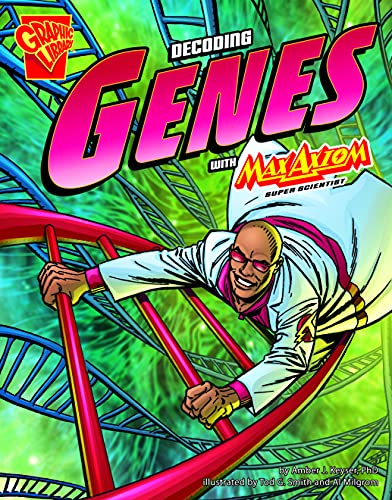 The Max Axiom is a series of science comic graphic novels that are presented in such a way as to draw the attention and capture the minds of young reads to what ordinarily would be a complex subject to convey and understand. The Max Axiom science series makes learning about science fun and interesting, even I enjoyed reading this edition and they all seem to appeal to me. This particular edition "Decoding Genes" is geared toward 7th graders but surely it can have a broader audience of 5th grade to adult. I included older age groups because some of the terms and scientific names of elements discussed will be new vocabulary and should be focused on more closely. In this issue Max explores heredity, the study of heredity is called genetics. In 1860 Gregor Mendel through his experiments with pea plants, lead the discovery to genetics. Humans draw their physical and mental characteristics or traits from genes which they receive from their parents. In this issue, this Max Axiom will describe and break down the gene into its intricate parts. The gene is made up of atoms, each atom having a nucleus which contains DNA, which is made up of Chromosomes. This science series of graphic novels have great illustrations which definitely help the reader to grasp this complex topic.