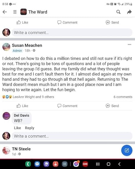 This hit a very personal nerve. There's a special place in hell for people to do this kind of thing. An author faking her own suicide then moseying back online 2 years later acting like nothing happened all 'psych Got ya?!' What in the world is wrong with people? And I honestly don't understand why? For attention? Scamming people for money? Boredom? WHAT?! The complete audacity and entitlement to think you can do this and get away with it. Susan Meachen you are absolutely disgusting for this.