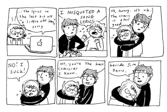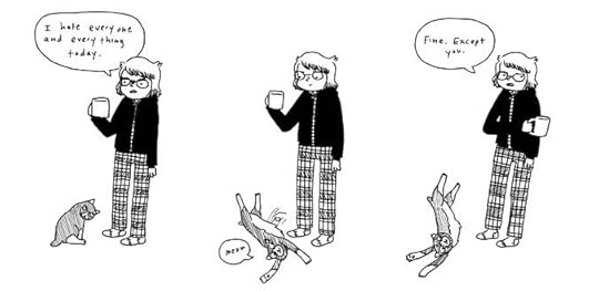 It's um, well not a good break book. Not because it's depressing just because it isn't all that good. I recommended this to a woman because she wanted new comics drawn by women. Now the only female comic artist I know off the top of my head is liz prince and I don't think she has anything new, but she is a genius, sadly we almost never have her in the store (even though I won a staffy for will you till love me if I wet the bed, it makes no god damn sense). So I gave the woman this book because 1. connor had it on display, 2. I knew it had just come out at the time 3. it was written by a woman. well it would have been better for tracy and I both if that had been the end of my knowledge of this book.