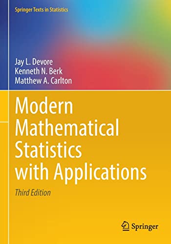 This 3 rd edition of Modern Mathematical Statistics with Applications tries to strike a balance between mathematical foundations and statistical practice. The book provides a clear and current exposition of statistical concepts and methodology, including many examples and exercises based on real data gleaned from publicly available sources. Here is a small but representative selection of scenarios for our examples and exercises based on information in recent The main focus of the book is on presenting and illustrating methods of inferential statistics used by investigators in a wide variety of disciplines, from actuarial science all the way to zoology. It begins with a chapter on descriptive statistics that immediately exposes the reader to the analysis of real data. The next six chapters develop the probability material that facilitates the transition from simply describing data to drawing formal conclusions based on inferential methodology. Point estimation, the use of statistical intervals, and hypothesis testing are the topics of the first three inferential chapters. The remainder of the book explores the use of these methods in a variety of more complex settings. This edition includes many new examples and exercises as well as an introduction to the simulation of events and probability distributions. There are more than 1300 exercises in the book, ranging from very straightforward to reasonably challenging. Many sections have been rewritten with the goal of streamlining and providing a more accessible exposition. Output from the most common statistical software packages is included wherever appropriate (a feature absent from virtually all other mathematical statistics textbooks). The authors hope that their enthusiasm for the theory and applicability of statistics to real world problems will encourage students to pursue more training in the discipline.