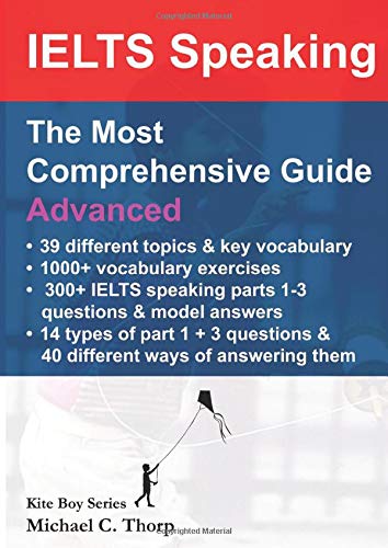 As an IELTS examiner and teacher for over 20 years, I feel that most of the IELTS speaking test study materials are woefully inadequate. They don’t prepare students with enough useful vocabulary, vocabulary exercises, speaking practice, and detailed practice structures and examples that can best enable them to attain a band score 6 or 7 or higher. The Kite Boy IELTS speaking series of books (Pre-Intermediate, Intermediate, Advanced, and All in One) aims to rectify all that by providing the most comprehensive guide to the IELTS speaking test.The Advanced book •39 different Part 1, 2 and 3 topics and key vocabulary•1000+ vocabulary exercises•300+ practice questions, with model answers and suggested structures•8 different types of part 1 questions and 22 different ways of answering them, and 6 different types of part 3 questions and 18 different ways of answering themSpecific Aims of the BookIt is to provide useful vocabulary, highlight ways of answering the different questions, with model answers and lots of practice questions, so students can feel confident about how to do well in the IELTS speaking test.