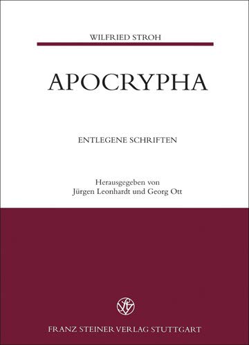"Das Buch sei jedem wissenschaftlichen Latinisten und jedem, der sich fuer die Vermittlung dieses Fachs und damit fuer seine Zukunft interessiert, wärmstens empfohlenà Man wird es nicht aus der Hand legen, ohne eine Fuelle von Anregungen und neuen Einsichten empfangen zu haben." Anzeiger fuer die Altertumswissenschaften Aus dem Labor Die Arbeit im antiken Rom. Musa Die Knabenliebe in der klassischen Dichtung der Römer Zu einzelnen römischen Worauf beruht die Wirkung ciceronischer Reden? Ciceros erste Rede gegen Catilina. Lesbia und Ein erotisches Liederbuch im Corpus Catullianum. De Horatio vitae praeceptore Epicureo. Quid de obsequio suo in amore poetae elegiaci senserint. Heroides Ovidianae cur epistulas scribant. De crucibus quibusdam amatoriis. Expedit esse deos. (Ovid, Ars amatoria 1,637). De dispositione libelli quem de vita beata Seneca scripsit Grammatik und De ellipseos genere quodam disputatio grammatica. Kann man es lernen, lateinische Verse zu sprechen? Arsis und Thesis Wie hat man lateinische Verse gesprochen? Rezeption der De Ciceronis Demosthenisque eloquentia quid Germani critici iudicauerint quaeritur. Caelo Musa beat, Horaz und der neuzeitliche Pegasus. Rezension Falx aurea (periculum quoddam Asterigis) [...], in Latinum convertit Rubricastellanus Kann man es lernen, lateinische Texte zu sprechen? Text oder Lernziel? Ein Sondervotum zum altsprachlichen Lektuereunterricht Carmen Conradus pollicilingus Schriftenverzeichnis Wilfried Stroh.