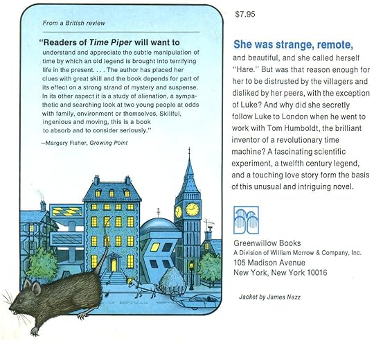 The answer to their otherworldliness will be explained but not before Luke tries to unravel the mystery of the wraith-like Hare and her new companions. The 70's was a gold mine of quirky fantasies such as MR MOON'S LAST CASE by poet Brian Patten and Nina Beachcroft's ILL MET BY WITCHLIGHT. TIMEPIPER was published first by Greenwillow (no slouch in children's literature cf Diana Wynne Jones) and was later deemed worthy of Tempo Books' MAGIC QUEST series. Sadly this book is unlike anything being published today and is worthy of Philip Pullman!