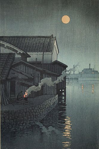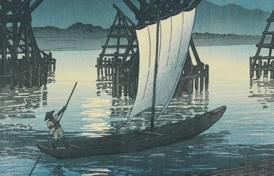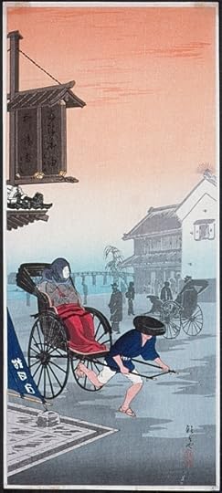 "The rickshaws always took the road along the Sakura. As the sun went down and it began to get dark, the men would light lanterns on long poles and hang them on the rickshaws, where they'd swing from side to side as we trundled along. And on summer evenings, thousands of fireflies swarmed around, blown like sparks. Sometimes you'd hear frogs croaking: they'd stop suddenly as the rickshaws got near, but once they were past they'd start up again. it was wonderful, with the sound of running feet on the dark path and the moon over the distant mountains."