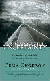 Comfortable with Uncertainty is an anthology, broken up into 108 (an auspicious number in almost all Indian spiritual traditions) one-page snippets summarizing important subjects drawn from the author's previous books. This is not dry, academic dharma – while based on and completely congruent with ancient Tibetan Buddhist teachings, these pages comprise the kind of warm, personable, accessible advice for everyday life that American Buddhist nun Pema Chödrön is known for. While some of the 108 topics concentrate on straightforward, self-evident concerns and desires (e.g. "Why Meditate?", "Relax As It Is", "Communicating From The Heart", "Cultivating Compassion"), while some are drawn from the very formal teachings of Mahayana Buddhism (The Four Noble Truths, The Four Limitless Ones, the Paramitas, Lojong slogans, tonglen meditation). But each of the teachings still manage to remain completely easy to understand, and practical to put into use.