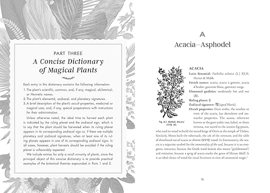 This was incredible. It was well-written and full of information about plants and their occult history. This was originally published in 1902 and translated by R. Bailey. The translator's forward was 21-pages of useful overview information about the translation, background, and gave some informational tips on the text to come. I thought this was a great primer before jumping into the text. As you can see in the pictures below, this was printed with readable and clearly presented information. Each plant and herb was listed with accordance information specific to its occult/magical nature: scientific name, Hermetic and magical names, and elemental/zodiacal/planetary signatures. Overall this was a great book about the occult nature and history of plants. I would definitely recommend this to anyone wanting to read about a unique side of the occult. Thanks!