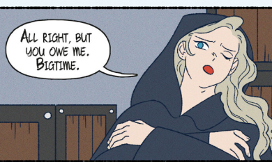 The pacing. It's all over the place. Really, nothing happens in the first half of the book, just slice-of-life stuff in Iliad and Amelia settling there, and being introduced to the assemble cast. Then a riot and deaths happen, and Amelia moves to another place for a bit, then she has a birthday, then she marries Salira, then a framing and imprisonment happens, and then corruption and betrayals are revealed, and then a sudden move to somewhere else before we rush to the battle climax, which ends too quickly, and then the comic ends too quickly and abruptly, teasing a sequel.