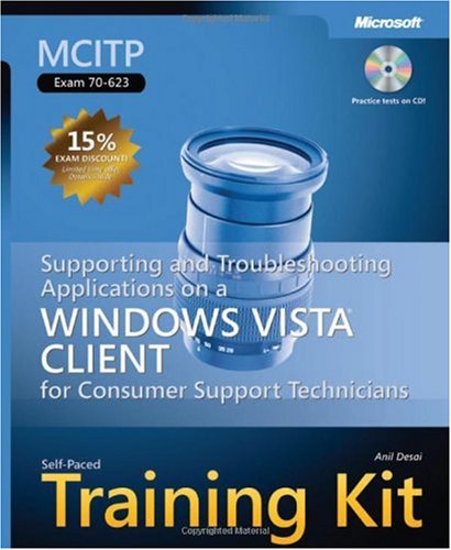 Announcing an all-new Self-Paced Training Kit designed to help maximize your performance on 70-623, the required exam for the new Microsoft Certified IT Professional (MCITP): Consumer Support Technician certification. This 2-in-1 kit includes the official Microsoft® study guide, plus practice tests on CD to help you assess your skills. It comes packed with the tools and features exam candidates want most--including in-depth, self-paced training based on final exam content; rigorous, objective-by-objective review; exam tips from expert, exam-certified authors; and customizable testing options. It also provides real-world scenarios, case study examples, and practice exercises for the skills and expertise you can apply to the job. Work at your own pace through the lessons and lab exercises. Focusing on the job role of supporting consumer client-computers running Windows Vista, this official study guide covers topics such as installing and configuring Windows Vista; managing parental controls and browser security; removing malware; configuring file sharing, printers, and media devices; and, troubleshooting and repairing Windows Vista. Then assess yourself by using 375+ practice and review questions on the CD, featuring multiple, customizable testing options to meet your specific needs. Choose timed or untimed testing mode, generate random tests, or focus on discrete objectives. You get detailed explanations for right and wrong answers--including pointers back to the book for further study. You also get an evaluation version of Windows Vista software and an exam discount voucher--making this kit an exceptional value and a great career investment.
