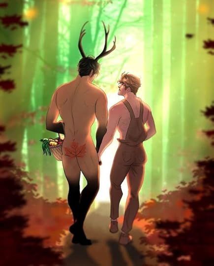 Gay fantasy romance Town ritual/sacrifice Forest creature Nature, gardening Slow burn HEA - off page