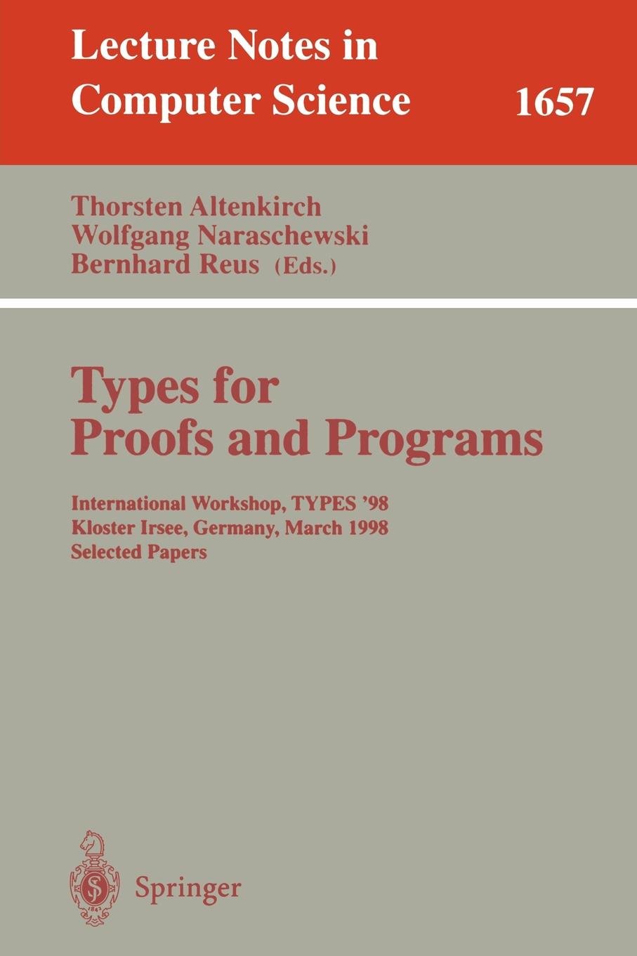 This book constitutes the strictly refereed post-workshop proceedings of the International Workshop on Types for Proofs and Programs, TYPES '98, held under the auspices of the ESPRIT Working Group 21900.The 14 revised full papers presented went through a thorough process of reviewing and revision and were selected from a total of 25 candidate papers. All current aspects of type theory and type systems and their relation to proof theory are addressed.