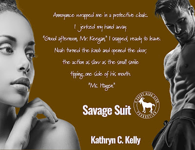 SAVAGE SUIT by Kathryn C Kelly is a stand alone, contemporary, adult, erotic, romance story line focusing on thirty-two year old, billionaire businessman Noah Keegan,and twenty-six year old advertising executive Ryan Hagen.
