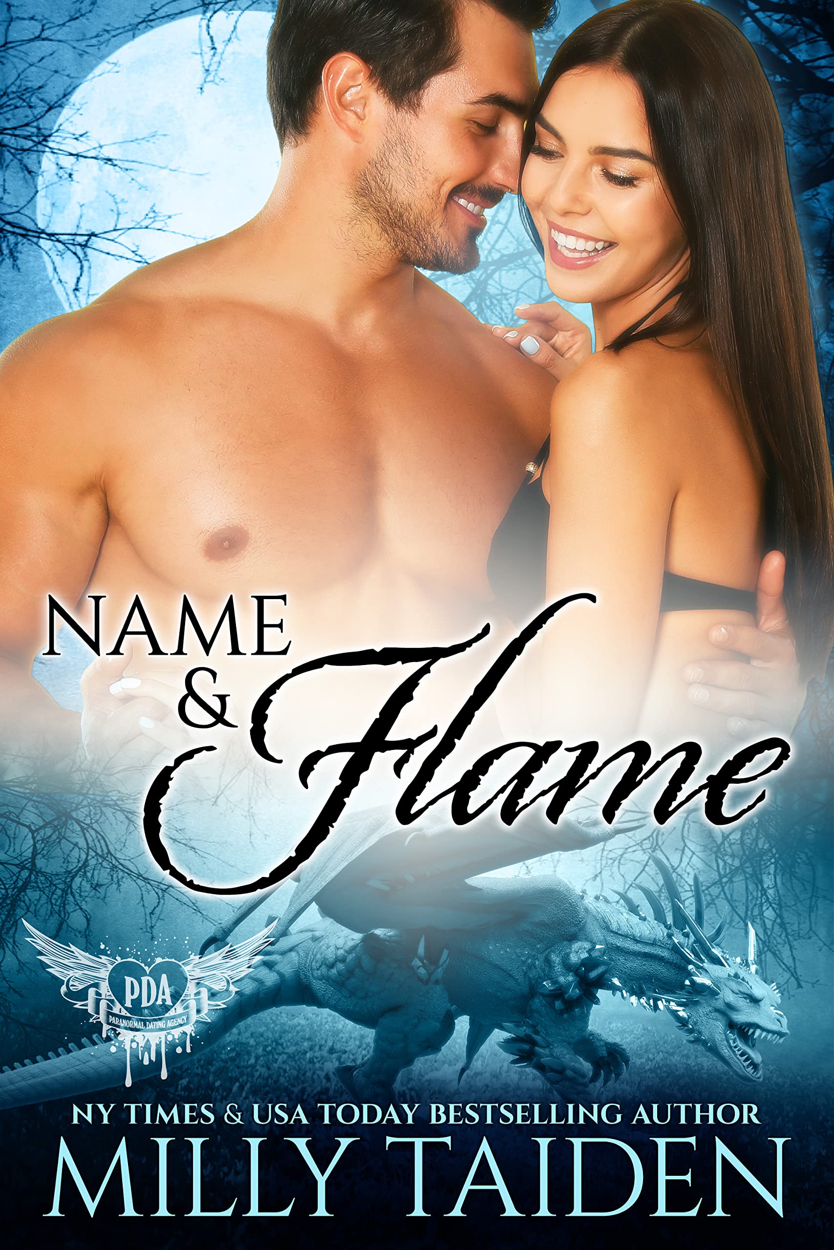 Name and Flame (Paranormal Dating Agency Book 71) by Milly Taiden. Audrey is an adrenaline junky. When Gerri Wilder offers her a job guiding a dragon shifter, Stone, searching for lost treasure Audrey thinks why not. Stone and Audrey are fated mates and when 3 other dragons try kidnap Audrey to show them where the treasure is Stone goes all alpha to Audrey’s disgust.