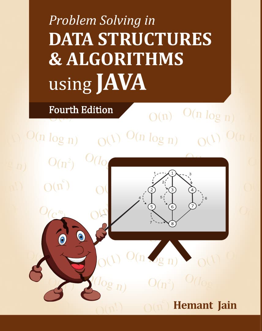 Mr. Hemant Jain had authored various books on "Data Structures & Algorithms". These books are recommended as text book for relevant courses in many institutes A&M University Central Texas USA.Dublin Technological University Ireland.Lincoln University UK.Bebe's-Bolyai University Romania.Al-Zautoonah University of Jordan.Institute of Graduate Studies & Research Alexandria University, Egypt.Savitribai Phule University Pune, India.IK Gujral Punjab Technical University, India.Mandsaur University, Madhya Pradesh, India.Mahatma Gandhi University, Kottayam, India.CHRIST (Deemed to be University), Pune Lavasa, India.Bharati Vidyapeeth Deemed To Be University,Pune, India. About The This textbook provides in depth coverage of various Data Structures and Algorithms.Concepts are discussed in easy to understand manner.Large number of diagrams are provided to grasp concepts easily.Time and Space complexities of various algorithms are discussed.Helpful for interviews preparation and competitive coding. Large number of interview questions are solved.Java solutions are provided with input and output.Guide you through how to solve new problems in programming interview of various software companies. GitHub Repositories for these books.