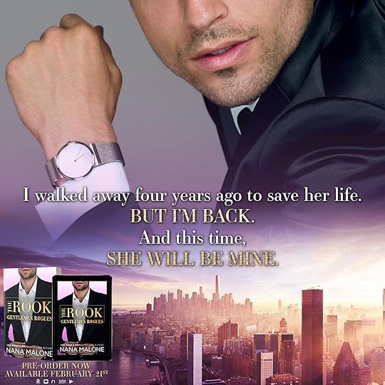 The Rook by Nana Malone is the fourth book in the Gentleman Rogues series. It is the story of the Westin St. James (aka Rook) and Nissa Montgomery. They have known each other since they were children, but suddenly one day Westin left and disappeared from Nissa's life. Now by the turns of fate Westin returns, at the request of her father, to be her bodyguard, what makes it even more difficult is that those feelings that they thought had disappeared are there more alive than before. This story is full of second chances, action, suspense, romance and love. I love these stories where you stay on the edge of your seat and are jumping to conclusions all the time, I enjoyed it from start to finish and I know you will too. Super Super Recommended *Thanks to Nana Malone and Valentine PR & Literary Management for my ARC. I voluntarily leave my honest review*
