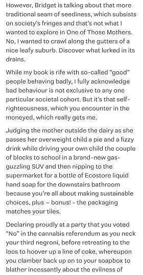 Beware, spoilers ahead. I have a lot of criticisms of this book, so let's get the positive one out of the way: One of Those Mothers is one of those books you can, as other reviewers have said, read in a day or two. And so credit is due for its easy readability.
