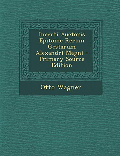 Incerti Auctoris Epitome Rerum Gestarum Alexandri Magni - Primary Source Edition