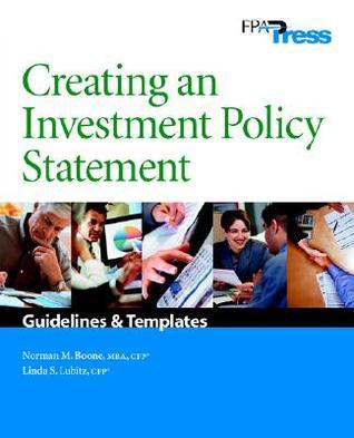 What is an Investment Policy Statement? The IPS provides the foundation for all future investment decisions to be made by an investor.It serves as a guidepost, identifying goals,creating a system and discipline for a decisions. A client said,"Once the trustees adopted the Investment Policy Statement,we found that we were making our decisions in a deliberate fashion,rather than in the "heat of battle."Since we'd already thought about how things would get done under a variety of circumstances,we no longer found ourselves getting emotional. Planning ahead makes it easier for all of us when the investment markets get turbulent." If you are an investment advisor, financial planner, stock broker, insurance agent, CPA or attorney advising your clients about their money,this innovative book will be a key tool for working with clients.