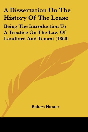 A Dissertation on the History of the Being the Introduction to a Treatise on the Law of Landlord and Tenant (1860) by Robert Hunter is a comprehensive study of the history of the lease, which serves as an introduction to a larger treatise on the law of landlord and tenant. The book provides a detailed analysis of the evolution of the lease, tracing its origins back to the feudal system and examining its development through the centuries. Hunter explores the legal and economic factors that have influenced the lease, including changes in property ownership, social and cultural norms, and government policies. He also examines the various legal forms that the lease has taken over time, including the fixed-term lease, the periodic lease, and the tenancy at will. The book concludes with a discussion of the contemporary legal landscape surrounding leases, including the rights and obligations of landlords and tenants, the role of the courts in resolving disputes, and the impact of modern legislation on lease agreements. Overall, A Dissertation on the History of the Lease provides a comprehensive and insightful overview of the lease as a legal and economic institution, making it an essential resource for scholars, lawyers, and anyone interested in the history of property law.This scarce antiquarian book is a facsimile reprint of the old original and may contain some imperfections such as library marks and notations. Because we believe this work is culturally important, we have made it available as part of our commitment for protecting, preserving, and promoting the world's literature in affordable, high quality, modern editions, that are true to their original work.