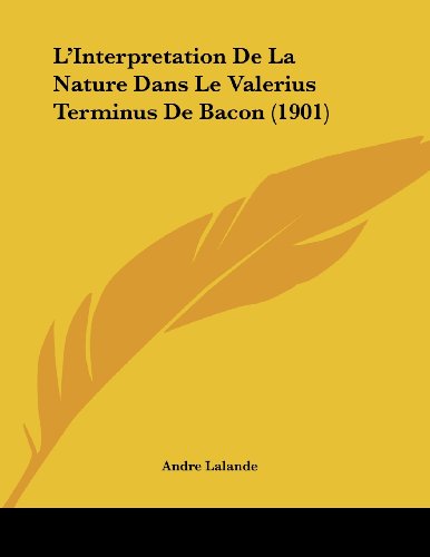 L'Interpr�����tation De La Nature Dans Le Valerius Terminus De Bacon (1901) est un livre �����crit par Andr����� Lalande. Ce livre examine et analyse l'�����uvre de Francis Bacon intitul�����e ""Valerius Terminus"" qui traite de la nature et de la connaissance. Lalande explore la fa�����on dont Bacon interpr�����te et comprend la nature, ainsi que la mani�����re dont il envisage la relation entre l'homme et la nature. Il examine �����galement les diff�����rentes formes de connaissances et de m�����thodes scientifiques que Bacon utilise pour comprendre la nature. Ce livre est une ressource pr�����cieuse pour les �����tudiants de philosophie et d'histoire des sciences, ainsi que pour tous ceux qui s'int�����ressent ������ la pens�����e de Francis Bacon et ������ sa contribution ������ la compr�����hension de la nature.This Book Is In French.This scarce antiquarian book is a facsimile reprint of the old original and may contain some imperfections such as library marks and notations. Because we believe this work is culturally important, we have made it available as part of our commitment for protecting, preserving, and promoting the world's literature in affordable, high quality, modern editions, that are true to their original work.