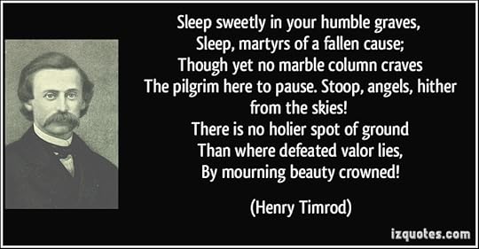 And as far as Henry Timrod is concerned, have you even heard of him?" he asks. "Who's been reading him lately? And who's pushed him to the forefront? Who's been making you read him? And ask his descendants what they think of the hoopla. And if you think it's so easy to quote him and it can help your work, do it yourself and see how far you can get.