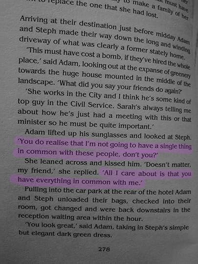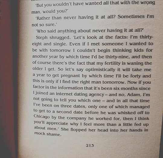 'We need to talk about us.' 'You are right. I promised you that I would think about it and I'm sorry I didn't bring the subject up before now but the truth of the matter is I just haven't had the time. What about we talk about it this time next week?' (P.137)