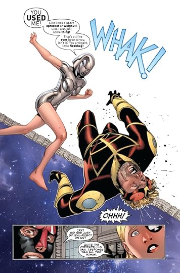 Speaking of going off his rocker, Quicksilver (one of my favorite characters) is fast approaching that as well. Loki's pretending to be the Scarlet Witch, which he doesn't know until the end of the book (yet another thing Pym decides to keep to himself). He's literally vibrating with rage. And with him living a lie (that a Skrull impersonated him and was the one who stole the crystals from the Inhumans) and his daughter (who knows it's a lie) hating him, all Pietro wants is his family - which is Wanda. I hope that his character is redeemed soon and he finds his way back into Luna's good graces once again.