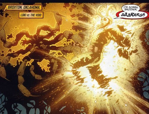 Hank Pym is a bit of an ass. Loki tells him here that it was all a trick and Pym is not really Scientist Supreme, but the reader is left to make his own judgement of how truthful Loki is being. I like to think that Pym really is that guy and Loki was trying to psych him out, but who knows? Sadly this was all dropped after this title as Pym becomes a headmaster at Avengers Academy.