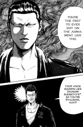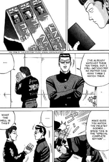 Из примечательного: в томе есть несколько забавных киноманских шуток. Бойя сравнивает голос своего врага с голосом калеки Сукэкийо Инугами из “Клана Инугами”, а Мако пытается пробудить сознательность своего нового вожака, убедив его посмотреть трилогию “Крестный отец”. Кстати, совершенно неудачно.