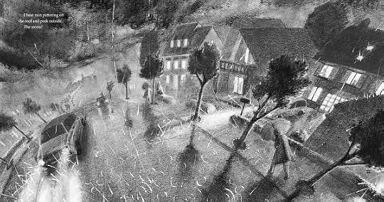 Although the illustrations get a 5 stars, the plot is pretty plain. Not too much is going on in this story. As I said, the pictures in charcoal are fantastic, the sense of the storm so well represented. When the good weather finally comes, and the blue sky appears, I, as a reader, felt as much relief as the boy in the story.