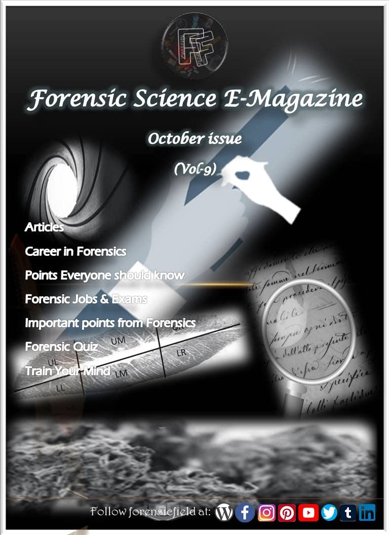We proudly present the October issue of your favourite magazine, Forensic Science E-Magazine. The current issue of the magazine, as usual, has helpful content related to forensic science. Our editorial team works diligently to deliver the study material while keeping in mind the needs of our valued readers. We are confident that if you read it attentively and patiently, it will go a long way toward giving you the information you need to tackle the difficult process of the exams and study and bring you certain knowledge and victory. Several important pieces on forensic science and science have been provided in the current edition by reputable authors.