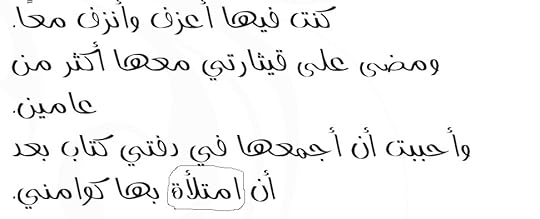 قرأتها منذ سنين طويلة و لم انسى لغته الجميلة و لا عاطفته الجياشة نحوها ، رشحت لي و لم أتوقع جمال هذه المشاعر و رقي التعبير بـهـــا ..