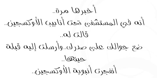 " أخبرها مرة .. أنه في المستشفى تحت أنابيب الأكسجين .. قالت له .. ضع جوالك على صدرك .. و أرسلت إليه قبلة حينها .. انفجرت أنبوبة الأكسجين .. "