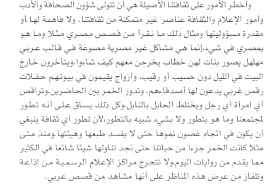 وفي نهاية الكتاب يعارض حسين مؤنس الاعلام العربي المعاصر في ذلك الحين لأنه يعرض الخمور والتفكك الأخلاقي على انها قصص مصرية وهو يرى انها ليست قصصا مصرية وليست من حضارتنا ولكن الحقيقة أن دكتور حسين هنا ينكر نفاق المجتمع وأن هذا المجتمع عبارة عن صورة هائلة للفضيلة ما إن تمزق الفضيلة حتى تجد المجتمع على حقيقته مهلهل ومفكك ومنحل أخلاقيا وجنسيا