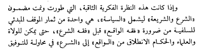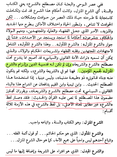 أما من حيث الفكر السياسي فقد أقر ابن تيمية وابن القيم بتجاوز معنى الشرع والشريعة لما ورد في القرآن والسنة لتشمل ما ورد من تشريعات الفقهاء والعلماء والمجتهدين والولاة، فنشأ بهذا (الشرع المُتأوّل) إلى جانب (الشرع الُمنزل) لكن لا يتمتع الشرع المُتأول بإلزامية الشرع المُنزل.