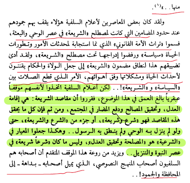 وهذا الغموض، أو عدم التحديد، الذي يحيط بمضمون مصطلح السلفية هو الذي دعا الدكتور "محمد عمارة" إلى إعداد بحثه الذي بين أيدينا والذي خصصه للحديث عن السلفية، وعن منهجها النصوصي الذي صاغه الإمام أحمد بن حنبل، وعن اشتراطهم "قطعية الدلالة وقطعية الثبوت" للأخذ بالنصوص المتعلقة بأمور الدين، وعن رأيهم بالقياس وشروط الأخذ به، كما وخصص المؤلف جزءاً من الكتاب لمسألة الحلال والحرام وهنا تحدث عن تضيقهم لدائرة الحلال والحرام واشتراطهم النصوص للحكم بما هو حلال أو حرام، ولأهمية الفكر السياسي السلفي أفرد المؤلف صفحات من بحثه للحديث عن هذا الفكر متوقفاً عند محطات بارزة من آراء علماء السلفية في "السياسة" وعلاقتها بالشرع، وهنا توقف عند مسألة التمييز ما بين الشرع المنزل والشرع المتأول والشرع المبدل.