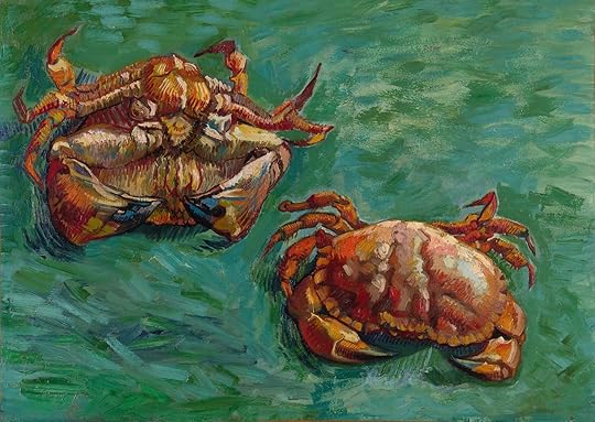 لوحة السراطين لفان جوخ في بيتٍ ذابلٌ كلّ شيءٍ فيه إلا الجنون وفي مدينةٍ أحرقت العالم ، ودمرّت حيواتٍ وحيوات تعيش أشباحٌ سجينة أنفسها والعالم تهذي بأدمغة من بارودٍ ودم