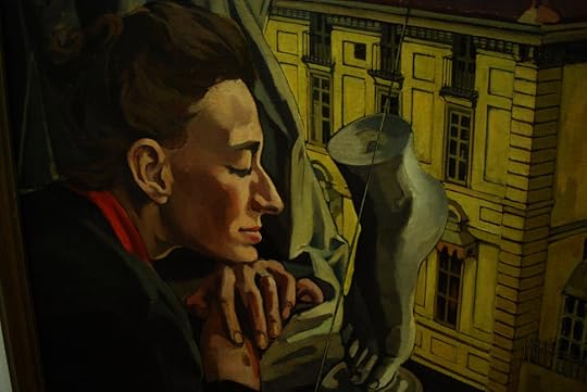 The atmosphere in Italian artist Italo Cremona’s painting with its somber creams, tans and rich browns depicting an odd sculpture and a pensive onlooker by a window with a medallion yellow building on the other side of the street is a visual complement to this well-crafted intriguing novel by Guiseppe Pontiggia.