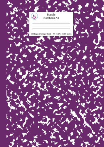 Lined notebook - 100 pages of white college ruled lined A4 paper A4 Notebook Size - 8.27" x 11.69" (21 x 29.7 cm); versatile size for your handbag, tote bag, desk, backpack, or at school, the campus, at home or work Sturdy matte softbound cover with professional marble design College Ruled Notebooks - School Supplies; Ideal for class notes, to do lists, recipes, writing paper, organizing, prompt book, journaling and brainstorming Perfect alternative to a4 note pads, daily journal, school jotters, exercise books A4, college supplies, or stationery gifts