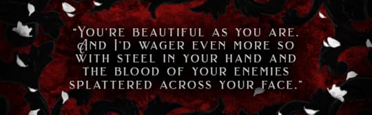 “you’re beautiful as you are. and i’d wager even more so with steel in your hand and the blood of your enemies splattered across your face.”